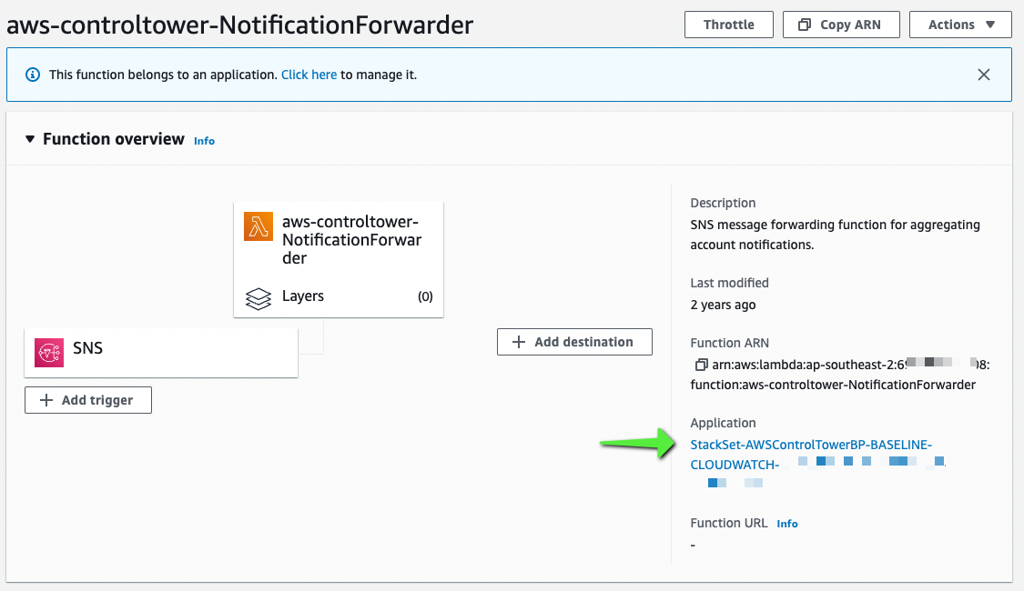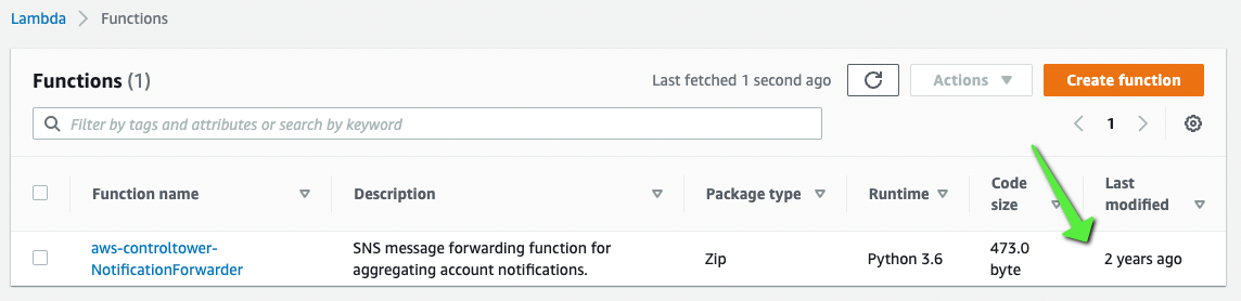 Well, because this Lambda function is deployed by AWS Control Tower, you don’t want to go messing with this function at this stage.