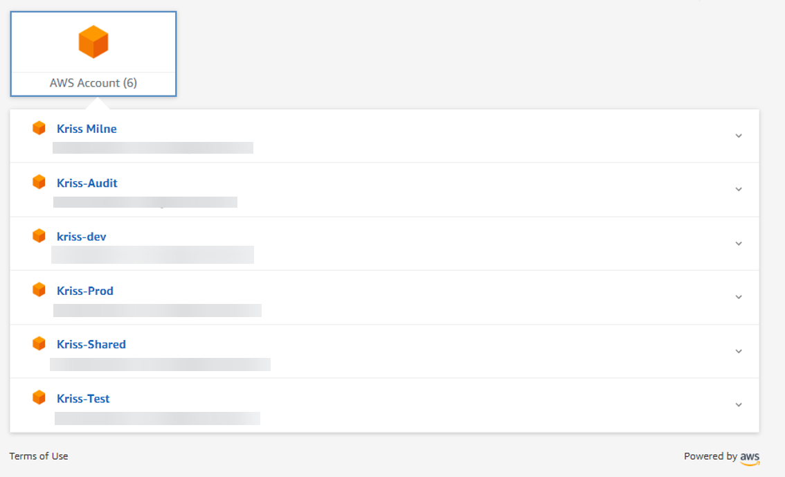 When we click on our AWS accounts we will be presented with the list of accounts we have access too