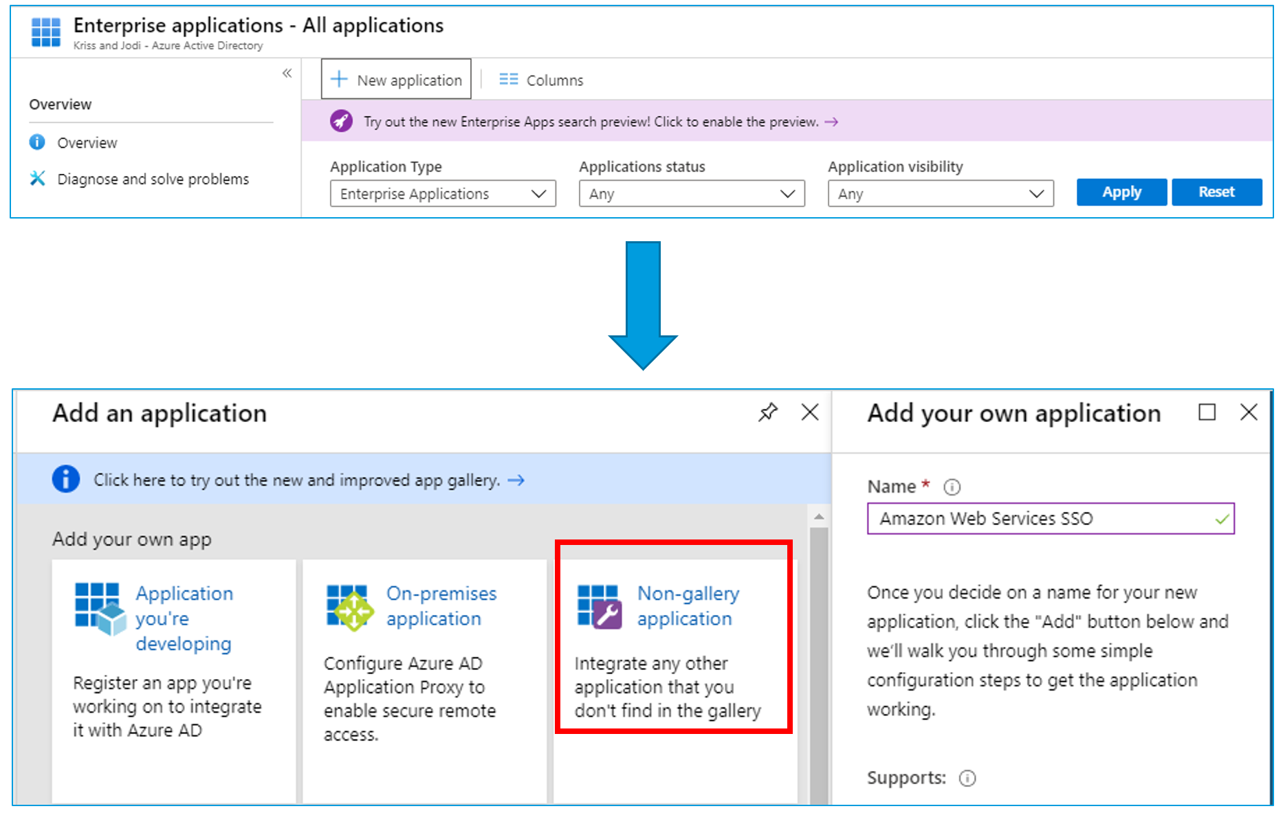 One thing to note is that at this time is, integrating Azure AD with AWS SSO requires a non-gallery enterprise application to be configured. This means you will need an Azure AD Premium license for the users using AWS SSO. Hopefully AWS will publish an updated marketplace application so we can use the free Azure AD license.