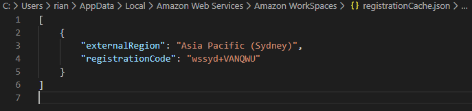 The registrationCache.json file lets us populate some settings for the Amazon WorkSpaces client.