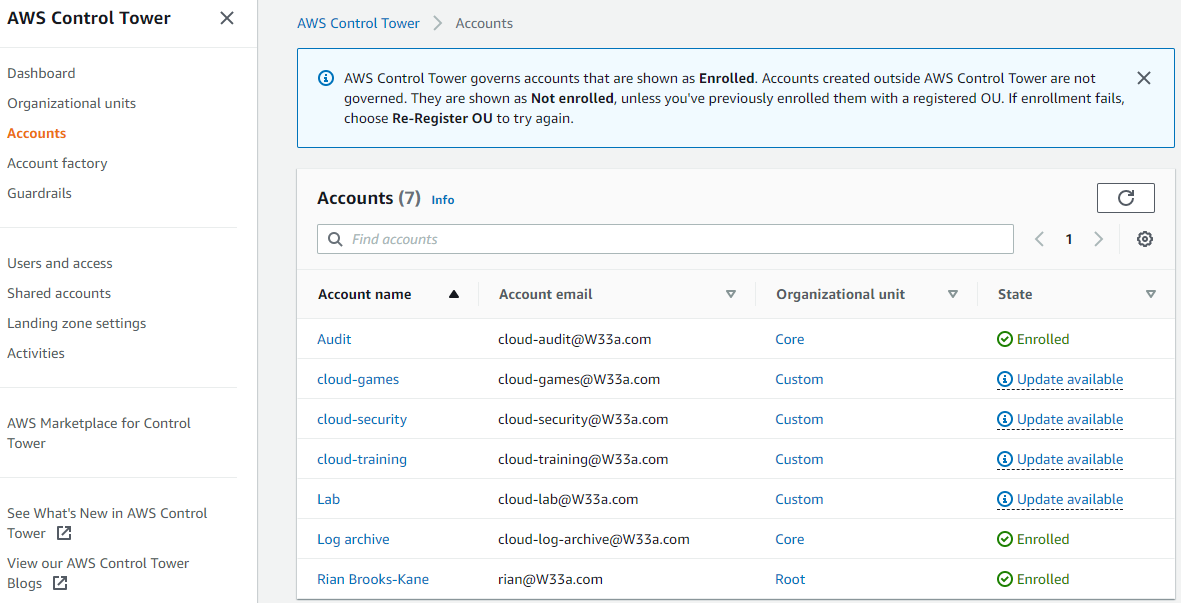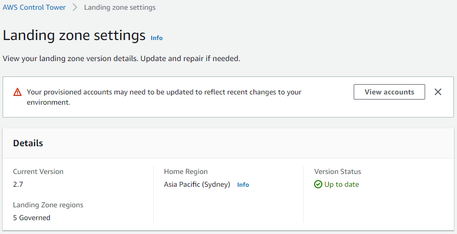 We can now see that our AWS Control Tower is up to date, now we can move onto updating our accounts.