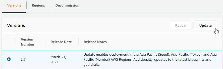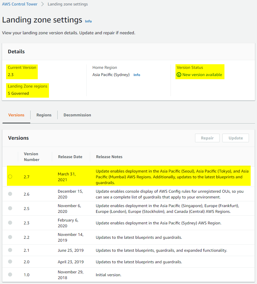 To date, AWS has released 7 updates for AWS Control Tower (You can find the release notes here)