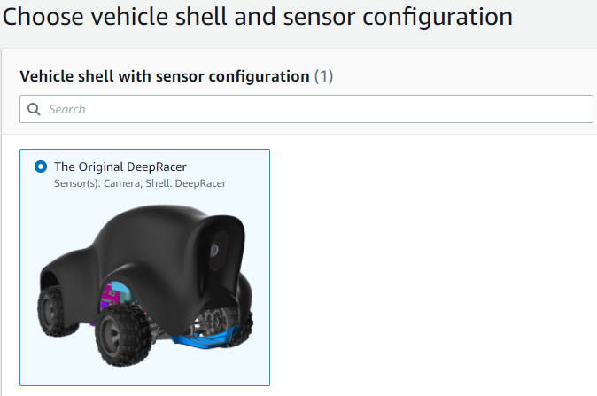 Next we select our Vehicle and we can only select the one vehicle which is the Original DeepRacer