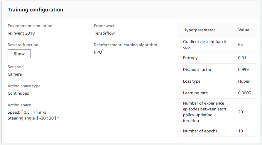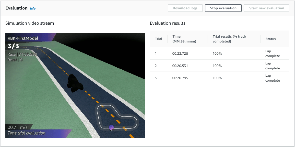 For this evaluation we are going to run the evaluation on the same re:Invent 2018 track in a Time Trial race with a total of 3 races.