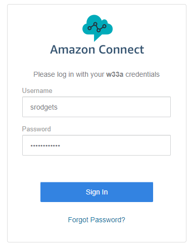 Lets login to the Amazon Connect URL we got given all the way at the start after we created the instance.