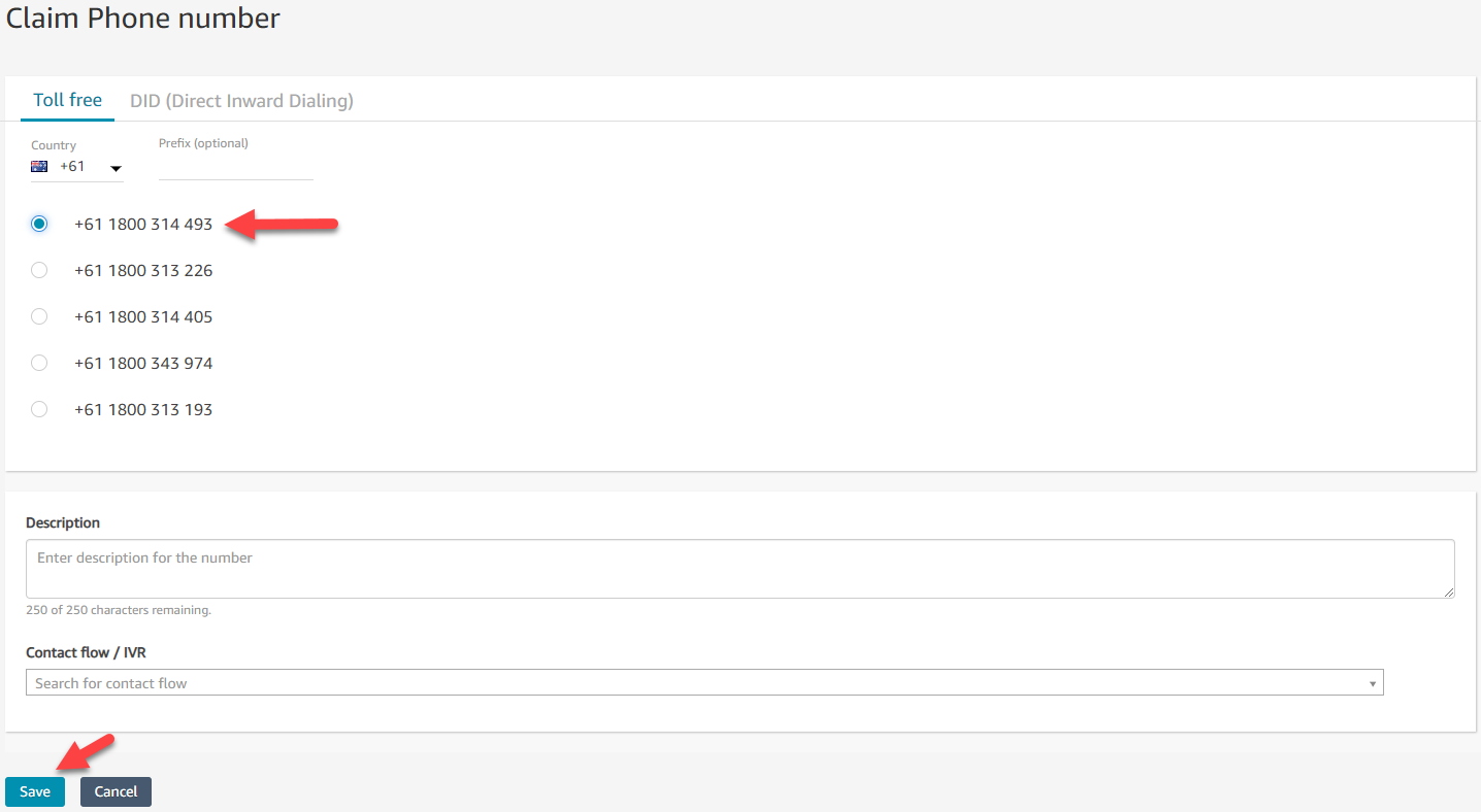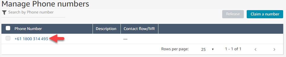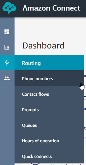 First, we are going to claim a phone number, this number will be used for incoming and outgoing calls to our support contact centre. Go to the Phone Numbers page under Routing.