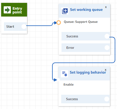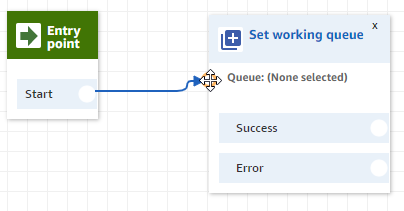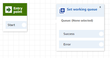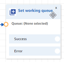 Grab Set working queue out of the Set menu and drag it onto the main flow window.