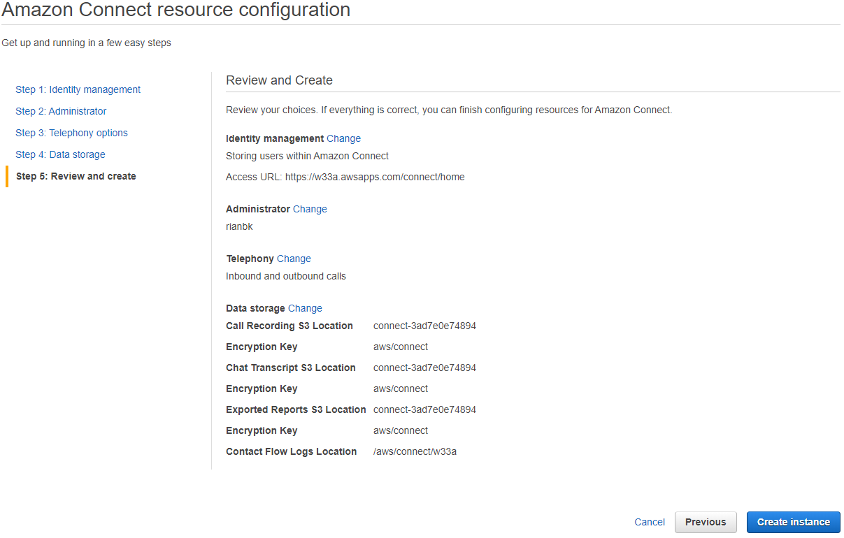 The getting started button will take us to the control panel for Amazon Connect. Note the user’s access URL as well. This is what you are going to give to your agents to use Amazon Connect.