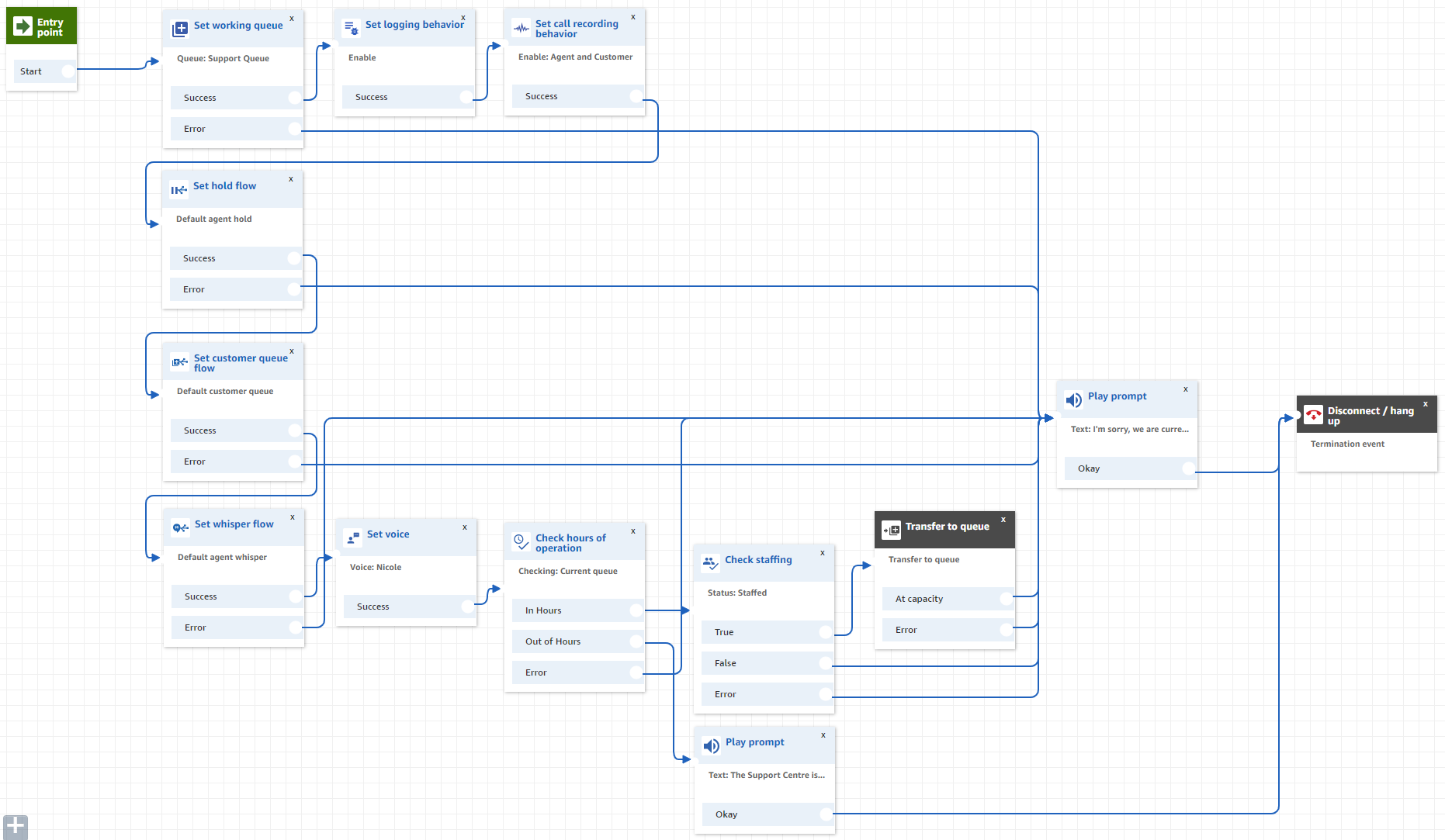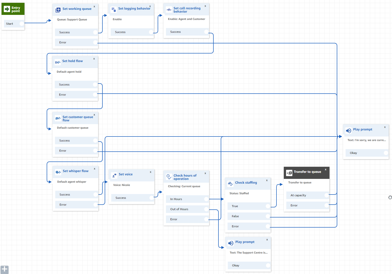 Now we can obviously handle these errors and full queues a different way (such as taking peoples numbers so we can do callbacks when the queue is at capacity) but this gives you an idea of what is possible with Amazon Connect.