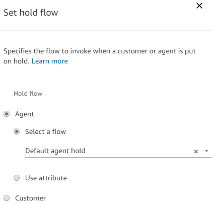 - Agent hold flows defines what the agent experiences when on hold with a customer