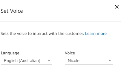Now we will set the voice, this setting defines what voice Amazon Polly will use when doing and text-to-speech.