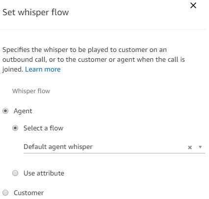 - Agent whisper flows defines what the agent experiences as part of an inbound call just before they are joined with a customer