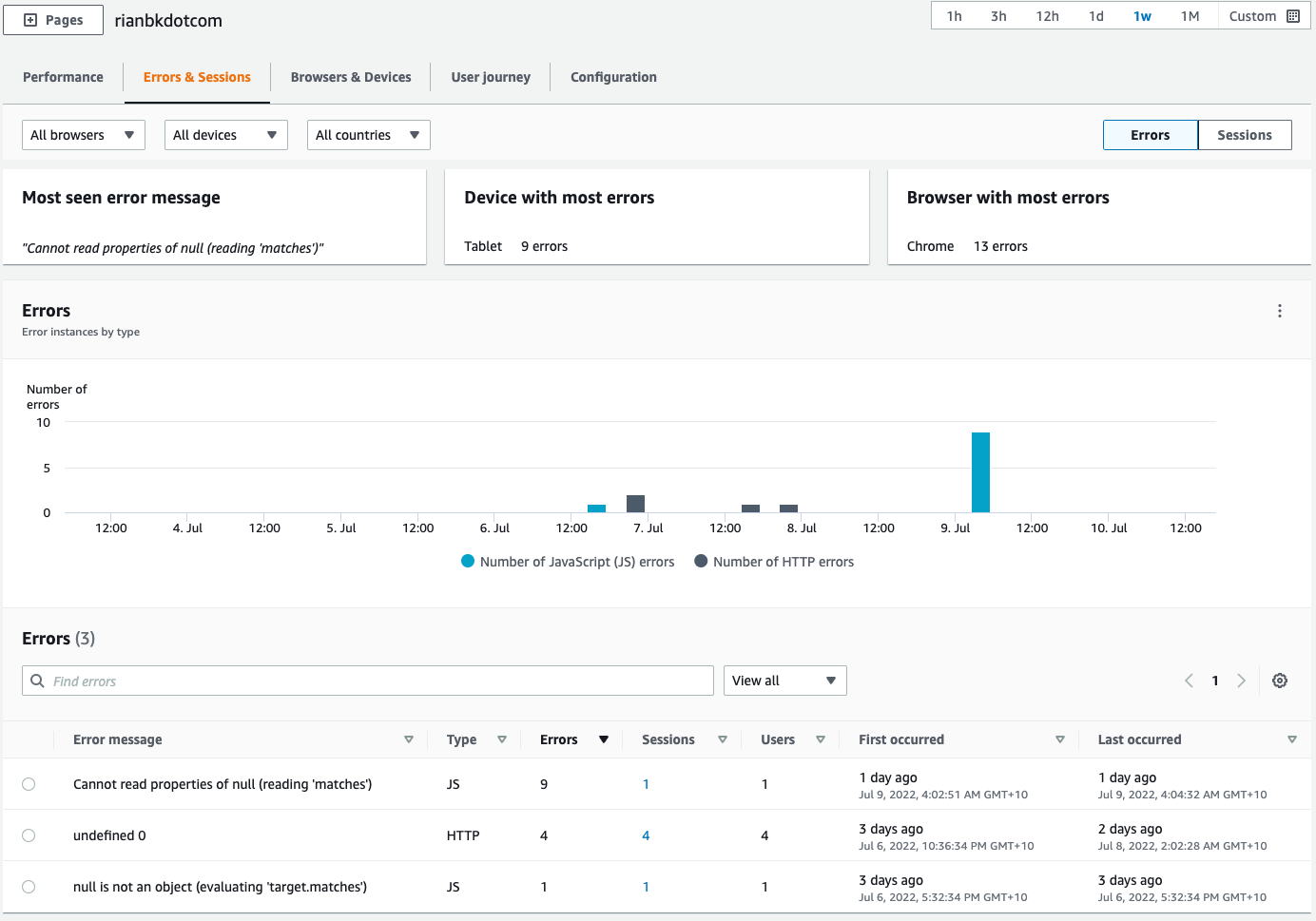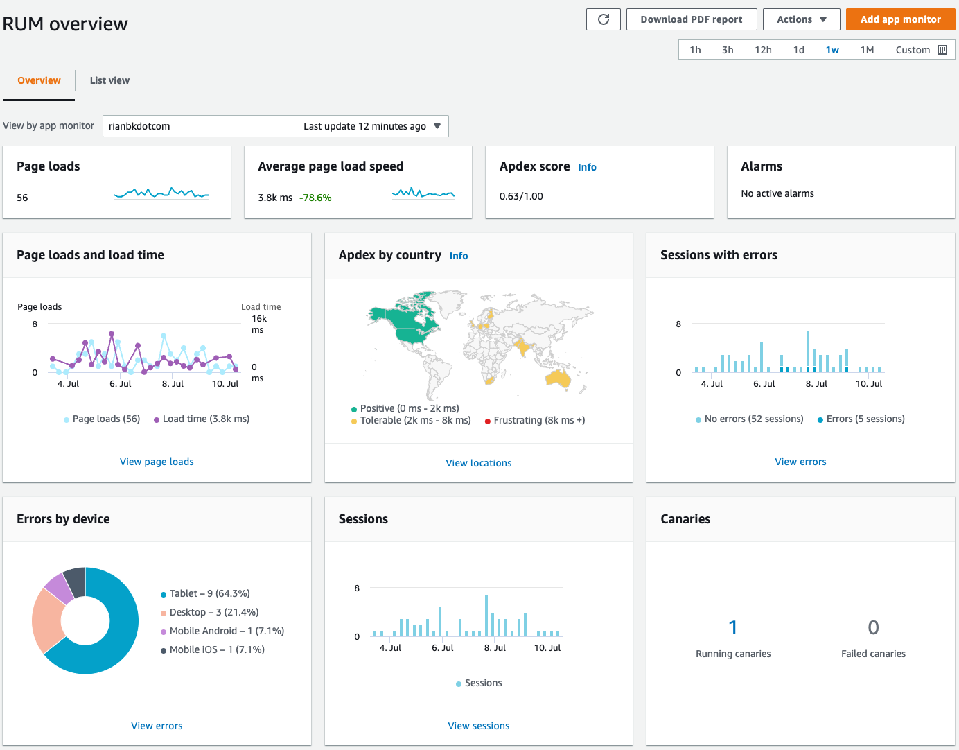 A quick visual look at CloudWatch RUM