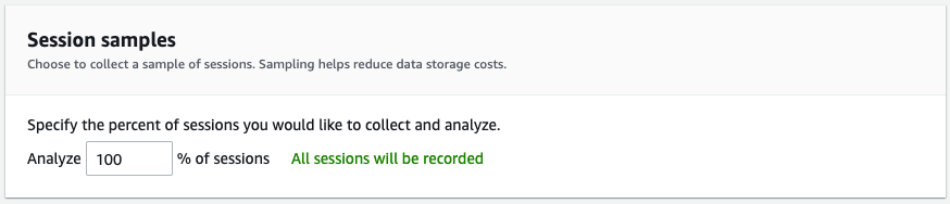 If your web application is a high traffic application, it may not make sense to sample all sessions for your application. Here you can specify your percentage of sessions that are collected and analysed. This can help reduce your storage costs also.