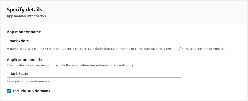 In the add app monitor step, we need to fill out some details about the application. Specify the name for the monitor and application domain.