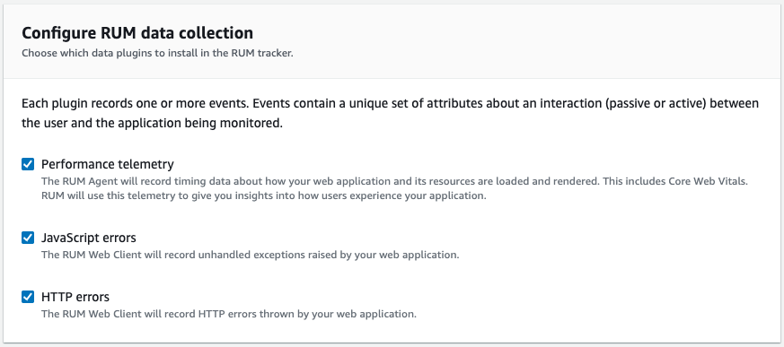 For RUM to work, your app needs to be authorised to send data to AWS. You have three options for this:
