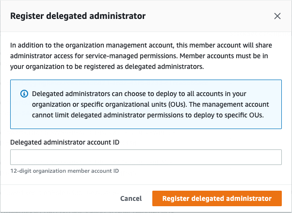 Another great example is configuring Delegated Administrator for AWS CloudFormation StackSets.